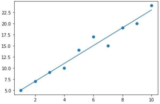 Step 2: Find the best line 📏 It finds the line that fits your data points best (closest to all points)